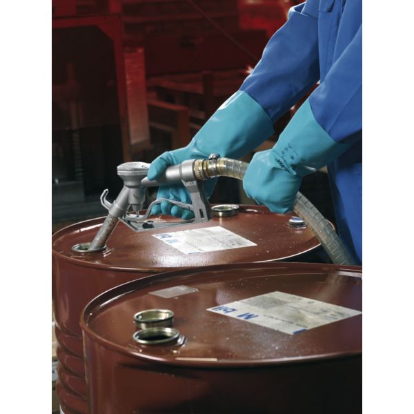 Nitrile. Support suédé. Finition adhérisée sablée. Contact alimentaire. Manutention lourde / Milieu humide Risque chimique Utilisation : traitement et préparation de produits chimiques, raffineries, pétrole et essence, métallurgie, agrochimie, imprimerie. Longueur : 33 cm Épaisseur : 0,38 mm Coloris : vert Taille : 8 à 10 Norme : CE Cat III – EN 374-3 (J.K.L) – EN 374-2 – EN 388 (4.1.0.1) Conditionnement : sachet de 12 paires Pour commander, faire suivre le code de la taille (ex : 14930-8).