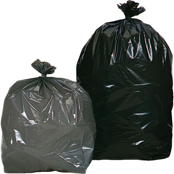 Sac poubelle gris avec système de fermeture. Bonne résistance pour les déchets courants et lourds.